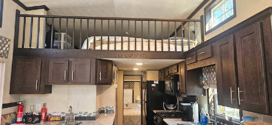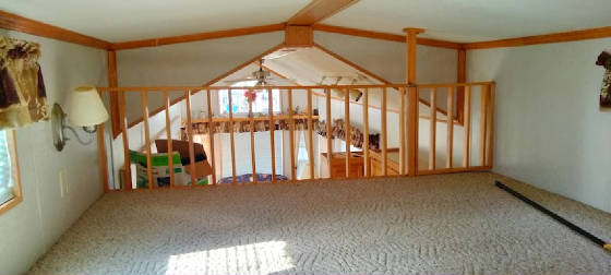 Double loft park model with two sleeping lofts up stairs and the main bedroom down stairs with a large deck and fully gravelled level campsite. Located 2 blocks from lake access, boat racks and a year round bath house. $52,900.00